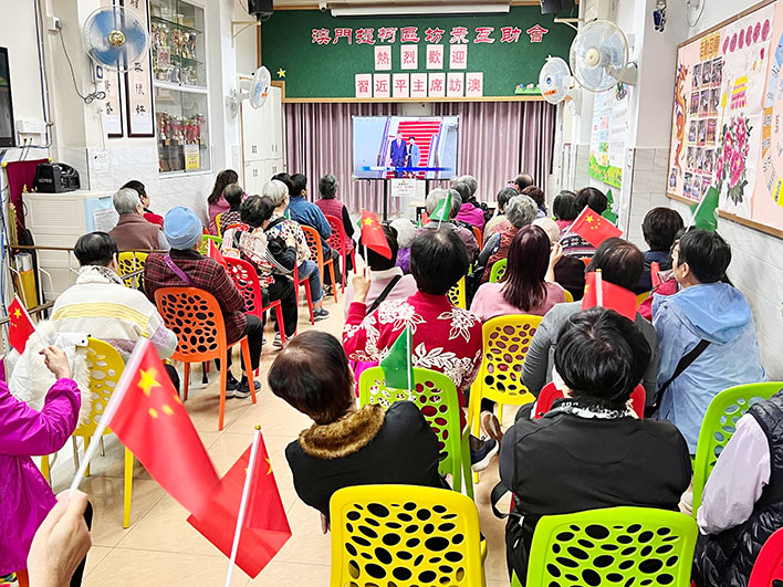 【特訊】時隔五年,中共中央總書記、國家主席、中央軍委主席習近平重臨澳門,提柯街坊會、新橋坊會、三巴門坊會昨日共組織逾百名會員於會址觀看習近平主席蒞臨澳門直播,歡慶這個重大歷史時刻。