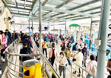截至昨日中午十二時,內港往來灣仔航線開出了約三十個航班,約二千一百五十人次經內港客運碼頭出入境。前日、昨日和明(二十五)日媽閣碼頭亦有免費海上遊航班,前日和截至昨日中午十二時,免費海上遊航班共約一百一十人次參與,現場秩序良好。
