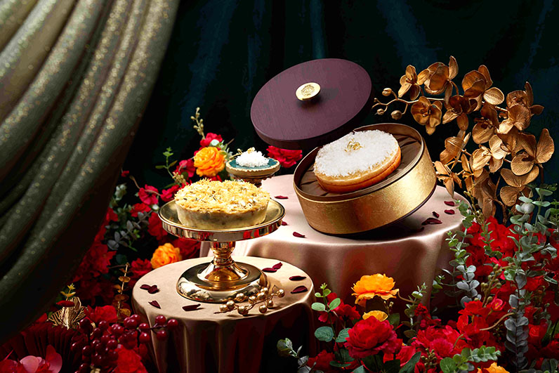 澳娛綜合與本地設計師歐俊軒以「金蛇賀歲」為主題,精心打造賀年糕點禮盒,紅盒上的盤蛇圖騰靈感源自東周王朝的藝術品,呈獻獨一無二的喜慶蛇年設計;搭配精巧優雅的紅提袋,方便賓客循環再用,充分體現澳娛綜合對環保的堅持。經典粵菜「茶樓」連續四年推出四款無添加的自家製賀年糕點,適合不同賓客的口味,每款由澳門元 338 起:20 年陳皮普洱年糕禮盒:入口甘香醇厚,紅糖齒頰留香;傳統臘味蘿蔔糕禮盒:鹹香可口,地道粵式風味;五福板栗黃金糕禮盒:香甜彈牙的全新口味,素食者佳選(上葡京限定款式);金蛇賀歲禮盒:配有蘿蔔糕和黃金糕兩款鹹甜糕點,一次滿足味蕾感受。