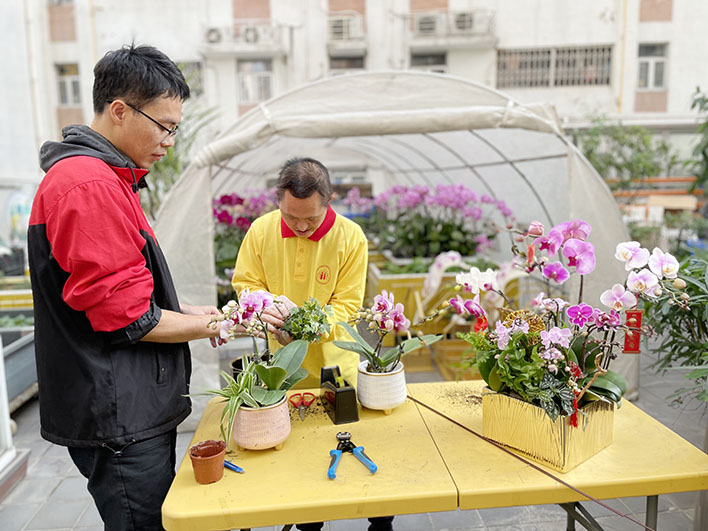 在新的一年裡,我們期待得到大家的熱情支持,容讓學員們有更多的培訓機會。您的認可與支持,將成為我們共同前進的強大動力!虹光軒的學員們正在積極參與年花的製作訓練,有助提升他們的園藝技能、情緒調節、專注能力及認知能力等,而學員們透過親自製作及組裝的過程,讓學員們的成功感和自信心都得到提升及滿足,使他們得到支持及鼓勵去發揮自己更多不同方面的潛能。