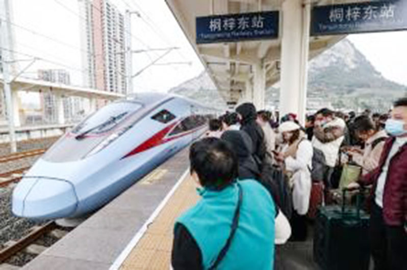 【中新社北京2月3日電】2月3日,春節假期臨近結束,貴州、廣西分別開行2025年首趟返崗專列,幫助外出務工人員返崗務工。