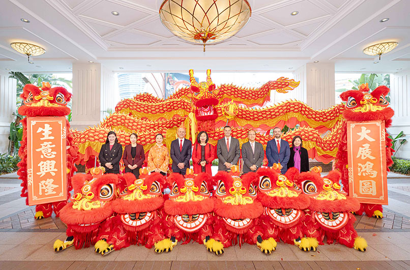 永利澳門及永利皇宮分別於大年初六(2 月 3 日)及初七(2 月 4 日)舉行了金龍醒獅獻瑞及鴻運炮竹賀新春慶典活動,由永利澳門有限公司總裁、董事會副主席兼執行董事陳志玲率領一衆管理層成員主持金龍醒獅點睛儀式,寓意大展鴻圖、財源廣進,為新春賀歲慶典揭開序幕。朝氣蓬勃的醒獅隊伍隨著鑼鼓節奏躍動起舞,並燃放炮竹賀歲,表演後龍獅隊伍在鑼鼓聲中穿梭兩間渡假村內各大熱點,呈獻富有中國傳統特色的精彩採青絕技,祝願賓客蛇年如意吉祥、龍馬精神;位於永利澳門寓意好運連連的「吉祥樹」和「發財魚缸」等熱門打卡點洋溢新春喜氣,兩家酒店亦以華麗喜慶的節慶主題佈置裝點每一個角落,現場場面歡慶熱鬧,年味十足。