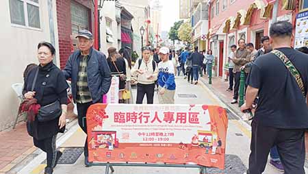 農曆新年期間氹仔舊城區設立了為期七日的農曆新年氹仔舊城區臨時行人專用區活動,離島工商業聯合會理事長阮若華表示,大部分商戶反應正面,生意有所提升,認為措施有助引流至內街,希望未來能總結並收集意見,將步行區方案優化成常態節慶活動。阮若華表示,在內街的商舖也希望有氣氛能帶動旅客光顧內街的商戶,看到效果相當不錯,市集是新的創造氣氛的活動,而內街也增設了座位,相當受旅客歡迎,看到基本上都是座無虛席,以小食為主的廣場商戶,旅客買了些小食就可休閒些去享受旅遊氛圍,我們認為能達到預期效果。