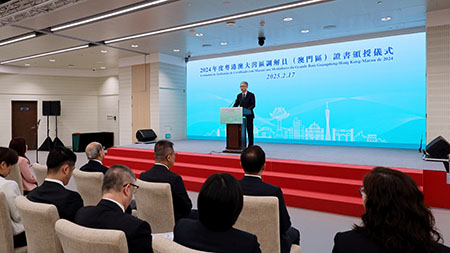 張永春致辭時表示,粵港澳大灣區是國家的重大發展戰略,推進大灣區三地在跨境爭議解決機制上的規則銜接和機制對接,是大灣區法治協同發展的重要一環,有助優化大灣區營商環境,推動大灣區高質量發展。《粵港澳大灣區調解員名冊(2024年)》的出台,將有效促進大灣區調解規則的統一,並帶動澳門調解服務業的發展。張永春寄語大灣區調解員充分發揮自身獨特優勢,積極參與大灣區調解事務,加強與粵港同行的交流與合作,為大灣區的法治建設作出應有的貢獻。