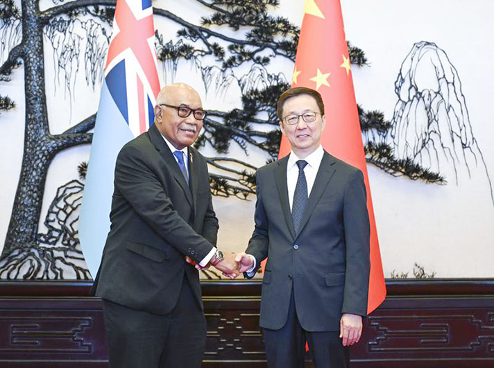 【新華社北京3月21日電】國家副主席韓正21日在京會見斐濟議長吉托科。 韓正表示,斐濟是最早同新中國建交的太平洋島國,建交50年來,中斐關係歷經國際風雲變幻考驗,成果豐碩,兩國已成為相互尊重、共同發展的全面戰略夥伴。中方願同斐方共同努力,認真落實兩國領導人達成的重要共識,弘揚傳統友好,共同慶祝好建交50周年;深化政治互信,堅定支持彼此核心利益和重大關切;打造更多合作成果,加強多邊合作,推動中斐關係持續健康發展。