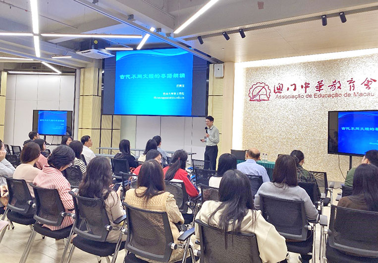 【特訊】為提升中小學語文教師粵語朗誦的指導技藝,教育會語文小組特邀暨南大學華文學院院長、博士生導師侯興泉教授作主講嘉賓,於3月26日假澳門教師專業發展培訓中心舉辦“古代不同文體的粵語誦讀”的專題講座。活動獲澳門基金會贊助。