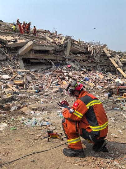 當前,災區天氣炎熱,白天最高氣溫達到40℃以上,作業場地蚊蟲較多,為確保救援行動效果和安全,中國救援隊伍嚴格執行隊員梯次輪換作業制度,嚴格落實歸隊人員、裝備洗消措施,定時對營地內部及周邊進行消殺,確保衛生防疫安全。
