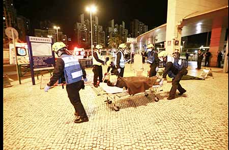 【特訊】澳門保安部隊事務局聯同消防局、澳門海關、治安警察局,於4月4日凌晨1時15分在關閘邊檢大樓舉行火警應急聯合演習,是次演習目的是測試在關閘邊檢大樓發生火警時,各部門對突發事故的應變計劃以及溝通協調能力。