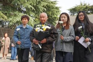 東南大學海外教育學院的外國留學生們與南京大屠殺倖存者後人面對面交流。來自埃及的法易表示,在多次參觀侵華日軍南京大屠殺遇難同胞紀念館後,他成了館裡的紫金草國際志願者,他希望年輕人都能成為傳播和平種子的使者。 清明祭儀式末尾,南京大屠殺死難者遺屬代表將寫給遇難親人的信投入時光信箱,寄託哀思,祈願和平。