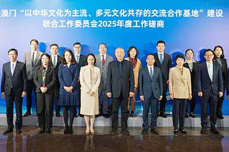 【特訊】促進澳門「以中華文化為主流、多元文化共存的交流合作基地」建設聯合工作委員會(下稱:聯委會)四月一日在北京召開二○二五年度工作磋商會議,文化和旅遊部副部長高政、澳門特別行政區政府社會文化司司長柯嵐、中央人民政府駐澳門聯絡辦公室副主任黃柳權及中共中央港澳工作辦公室二級巡視員許麗等出席,會議回顧二○二四年「一基地」建設的工作成果,並就未來拓展內地與澳門文化交流合作進行磋商,並完成簽署《中華人民共和國文化和旅遊部與澳門特別行政區政府關於合作開展中國文化和旅遊海外推廣工作的協議》。