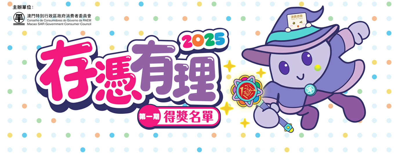 【特訊】消費者委員會舉辦的“存憑有理2025”活動,第一期超過5,800人次參加,得獎名單已公佈於消委會網頁(https://www.consumer.gov.mo),消委會將以電話短訊通知各得獎者,領獎日期至2025年5月30日結束。