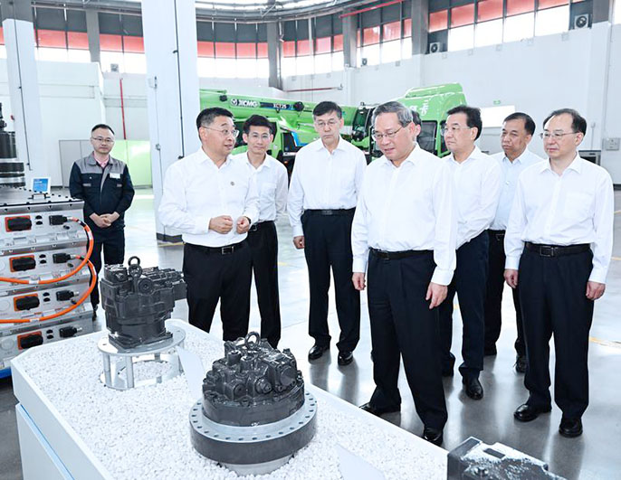 李強先後來到徐州市、南京市,走進企業、科研院所、工程現場、貿易合作平臺等,深入瞭解經濟運行情況。在江蘇匯智高端工程機械創新中心有限公司,李強聽取實驗項目等彙報,察看核心零部件和產品。他指出,工程機械行業高端化、智慧化、綠色化發展是大勢所趨。要對標國際先進水準,積極運用人工智慧、清潔能源等技術,推動產業轉型升級。要聚合行業資源,搭建大中小企業協同創新平臺,促進企業優勢互補、相互賦能。在深地科學與工程雲龍湖實驗室,李強聽取相關技術裝備研發進展等介紹,希望大家把科技創新和產業需求有效結合,推進重大原始創新和技術突破,加快產業化落地和市場應用推廣。在南京原子製造研究所,李強瞭解原子級製造技術發展等情況,勉勵他們錨定新領域新賽道,加強前瞻性佈局,深入開展基礎研究,推動跨學科交叉融合創新和開放合作,搶佔未來科技和產業發展制高點。