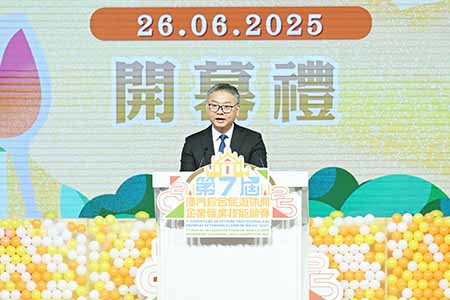 工聯總會副會長兼秘書長梁偉峰致辭指出,競賽自2019年首次舉辦,多年來一直與勞工事務局通力合作,並得到六間綜合旅遊休閒企業積極參與,讓旅遊休閒服務業從業員透過競賽平台各展所長,促進互學互鑒、提升職業技能,激發從業者的創新活力與服務熱情,讓工匠精神在實踐中得以傳承與發揚,更為旅遊休閒服務業高質量發展注入新動能。競賽至今已邁入第七個年頭,不僅成為本澳綜合旅遊休閒業盛事之一,更打造成為澳門職業技能競賽領域中的一張名片。工聯總會作為愛國愛澳的重要力量,未來將持續培養符合新時代需求的高素質人才,並與政府及社會各界合作,共同打造一支優秀的勞動者隊伍,為澳門經濟的持續繁榮提供堅實的人才保障。
