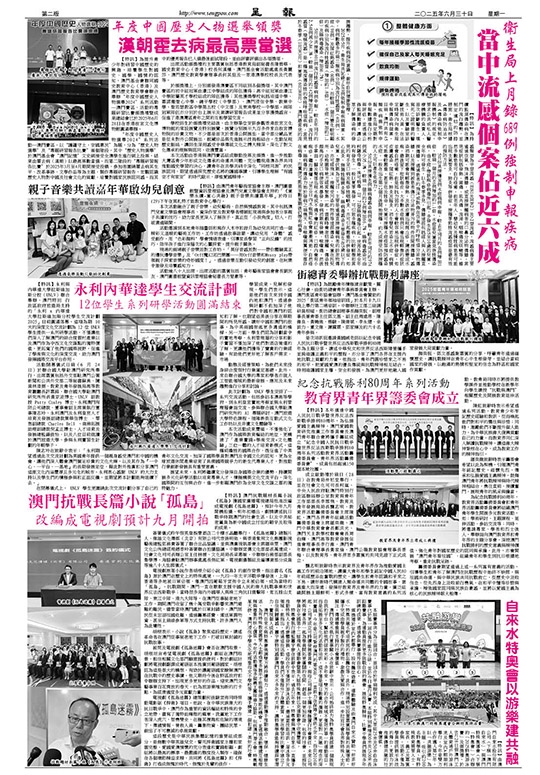 是次培訓班邀請黃國威老師以紀念中國人民抗日戰爭暨世界反法西斯戰爭勝利80周年為主題分享,講述中華兒女和世界反法西斯陣營攜手並肩維護正義和平的歷程,亦分享了澳門各界在支援內地抗戰上貢獻的力量。他指出,青年們需珍惜來之不易的和平,把愛國愛澳的優良傳統與抗戰精神相互結合,時刻維護國家主權、安全和發展,為澳門更好地融入國家發展大局貢獻力量。