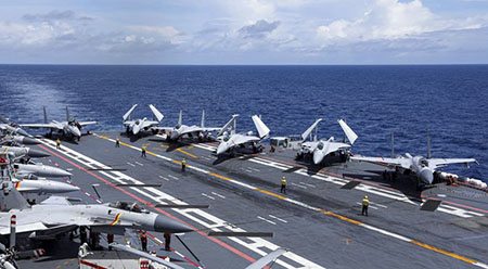 在這次遠海實戰化訓練中,遼寧艦、山東艦航母編隊轉戰黃海、東海、南海和西太平洋海域,堅持實戰實訓、聯戰聯訓、體系練兵,聯動相關軍兵種兵力組織互為條件、互為對手的實戰對抗,完成偵察預警、防抗打擊、對海突擊、對空防禦和艦載機跨晝夜戰術飛行等科目研練。