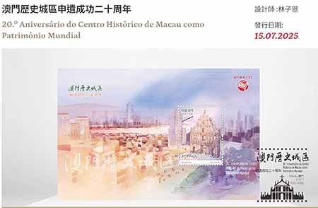 另外,郵電局今天(十五日)推出「澳門世界遺產二」專題郵摺,慶祝澳門歷史城區申遺成功二十周年。郵摺包括澳門申遺成功二十周年的郵資標籤和郵品,以及二零二二年發行的「保護世界文化和自然遺產公約頒佈五十周年」郵品。專題郵摺每本一百二十元,將在郵政總局集郵商店、水坑尾郵政分局及通訊博物館公開發售。
