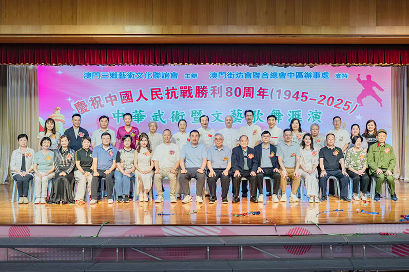 【特訊】為慶祝中國人民抗戰勝利八十周年,澳門衛國建澳聯誼會日前參與由三鄉藝術文化聯誼會主辦的“中華武術暨文藝歌舞匯演”活動,藉中華武術和文藝歌舞匯演感受先輩為和平而戰的信念與犧牲精神,反思今日和平得來不易,今後同為和平與發展貢獻力量。