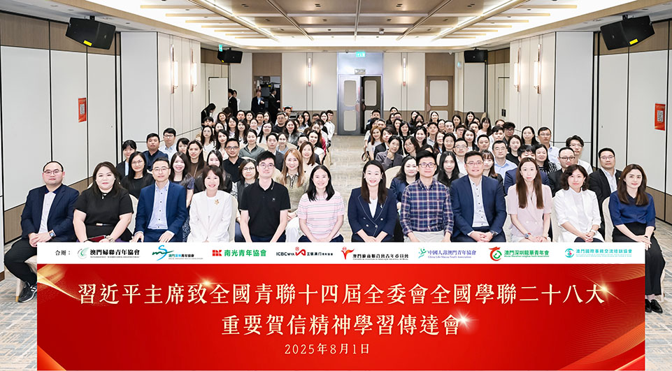 【特訊】由澳門婦聯青年協會、澳門深圳青年協會、南光青年協會、工銀澳門青年協會、澳門廠商聯合會青年委員會、中國人壽澳門青年協會、澳門深圳龍華青年會及澳門國際事務交流培訓協會共同舉辦的“習近平主席致全國青聯十四屆全委會全國學聯二十八大重要賀信精神學習傳達會”於日前假萬豪軒佳宴舉行,中聯辦社工部處長費春燕任嘉實,出席活動的青年代表逾一百五十人。