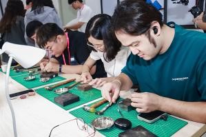 時值第十三屆海峽青年薈舉辦期間,第二屆海峽兩岸(福州)大學生公益廣告創意大賽暨學術交流活動在福州舉行,兩岸青年跟隨著國家級非物質文化遺產代表性項目銀飾鍛制技藝(畲族銀器製作技藝)福建省級非物質文化遺產代表性傳承人林偉星學習畲族銀器製作技藝。熱衷中華傳統文化的賴玉寅,對此次體驗興致濃厚。他說:“製作時,最專注的就是敲打的節奏感。整個世界仿佛祗剩下槌子和銀器的清脆聲,能專心感受每一次敲擊帶來的微小變化,完全沉浸其中。”