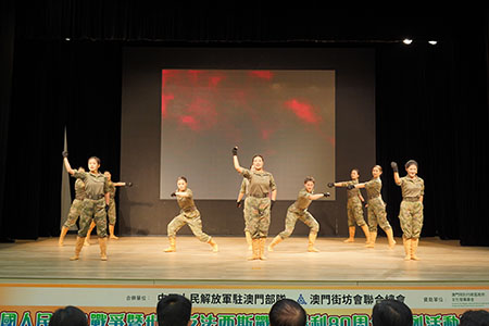 聯歡會上,駐澳部隊演出的民族舞《各族人民一家親》、女聲表演唱《濠江玫瑰》、朗誦《不朽》,以及街坊總會演出的舞蹈《沂蒙頌》、折子戲《黄飛虎反五關之激反》、京劇沙家浜《總有一天會解放》、歌唱《中國人》、《黃種人》、合唱《我們走在大路上》及《黄水謠》等節目,十分精采,引來在場解放軍戰士和街坊喝采鼓掌,場面熱烈、軍民融洽。
