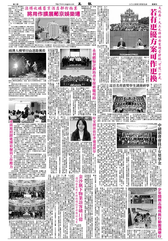 【特訊】由澳門工會聯合總會、澳門街坊會聯合總會、澳門婦女聯合總會主辦,澳門真菁育苗同學會、澳門善菁育苗同學會、澳門美菁育苗同學會合辦之“銘記歷史·共創未來”之匯菁祖國行活動,日前組織二〇二五年度澳門育苗獎近百名獲獎中學生赴湖南開展為期三天的學習考察之旅。本次活動特邀澳門中聯辦二級主任科員蔡陸宏擔任顧問,婦聯副會長鄺玉球任團長。