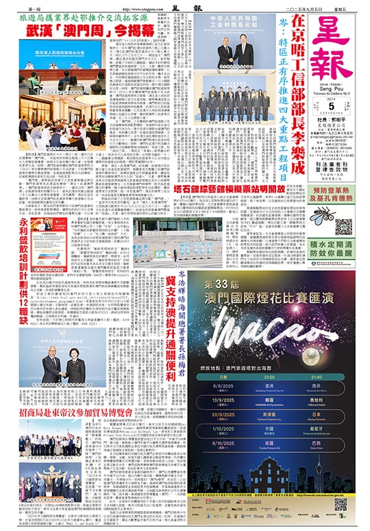 岑浩輝還提到,特區政府正籌劃澳門珠江西岸國際航空樞紐(港)、澳門科技研發產業園等四大重點工程項目,以及建設大灣區創新發展的西部增長極,就此需加快海關現代化建設,進一步提升通關便利化水平,期望海關總署繼續給予指導,支持澳門強化聯通條件,深化區域合作,更好融入國家發展大局,也藉此為澳門經濟適度多元發展注入更大動力。