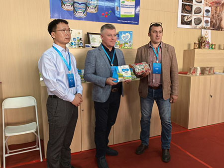 展館內人流如織,不同語言在此交匯,握手、洽談、簽約的身影穿行于展位之間,處處洋溢著合作交流的濃厚氛圍。產自俄羅斯遠東的蜂蜜罐整齊碼放,香甜的蜂蜜水吸引遊客駐足品嘗;韓國展區的嬰幼兒輔食試吃點圍滿了好奇的買家;蒙古國展商則熱情推介農產品與礦產資源,講述草原深處的故事。