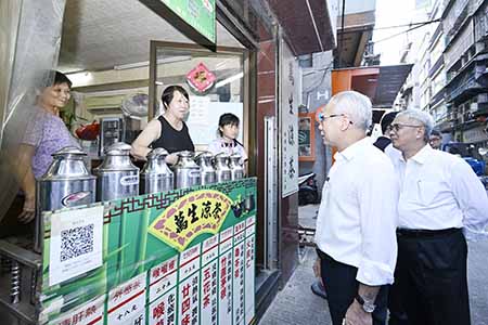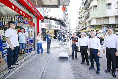 行政長官岑浩輝在保安司司長、聯合行動指揮官黃少澤,警察總局局長梁文昌及司法警察局局長薛仲明陪同下,視察十月初五街一帶,檢視低窪地區的防浸部署及準備工作,了解目前「颱風期間風暴潮低窪地區疏散撤離計劃」的排查及宣傳工作,以及執行計劃時的具體安排。