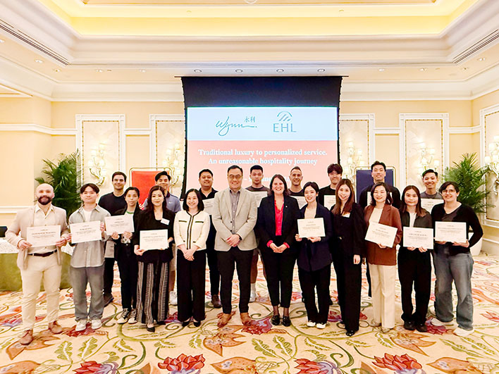 【特訊】永利與瑞士 EHL 酒店管理商學院合作推出的 2025 年「酒店管理認證課程」日前圓滿落幕。該課程旨在為酒店業管理者提供富有啟發的深度學習體驗與前瞻性的職業培訓,助其提升專業知識與技能,把握未來發展機遇。是次課程的成功舉辦,印證了永利持續助力澳門旅遊業發展、推動行業人才專業化的堅定承諾。