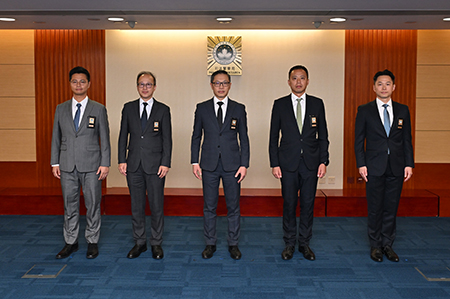 薛仲明局長在就職儀式上指出,司警局堅持情報主導刑偵,致力深化警務合作,以有效應對犯罪跨境化、複雜化態勢,是次獲擢升的主管人員具有出色專業能力及豐富實戰歷練,不僅能強化相關執法團隊的綜合素質與調查技巧,更為刑偵領域人才梯隊培養注入長效動能,從而促進執法效能持續提升。