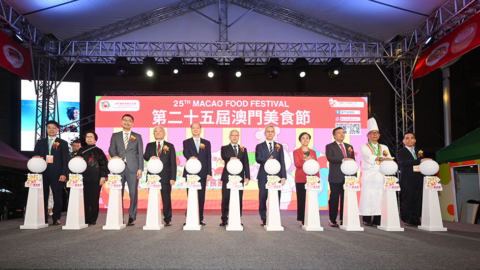 第二十五屆澳門美食節昨日起至十一月三十日,一連十七天假西灣湖廣場舉行。主辦方昨日晚上六時舉行開幕儀式,行政長官岑浩輝、中聯辦主任鄭新聰、經濟財政司司長戴建業出席。旅遊局局長文綺華致辭表示,美食節以美食為紐帶,豐富居民和旅客味蕾享受的同時,創造消費場景,促進夜間經濟。澳門正踏入盛事季節的高峰期,多元「旅遊+盛事」全城鋪開。除了美食節昨日正式開鑼,現正舉行的「澳門格蘭披治大賽車」與澳門賽區承辦十五運會的其中五項賽事,再加上即將在十二月登場的「澳門國際光影節」等精彩活動,共同展現「旅遊+美食+體育+盛事」的跨界聯動效應,推動旅遊經濟發展。