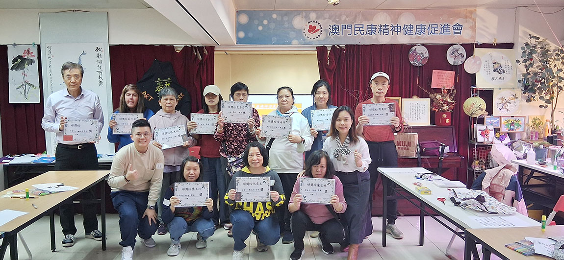 【特訊】澳門民康精神健康促進會除了為病人家屬照顧者提供各式情緒壓力紓緩講座或社交活動以外,亦發現精神康復者在日常生活中的自理能與照顧者的壓力紓緩成正比,有見及此,民康會特意邀請聖若瑟大學社會工作課程課程主任吳婉瑩為康復者設計正念復元課程。課程主要以精神科學國際著名學者FrederickHKanfer榮譽教授理念為藍本,配合澳門社會實際情況,構想出一套配合發挖自我能力的美勞和繪畫創作的實用課程,藉此啟動康復者塵封已久的想像開關。