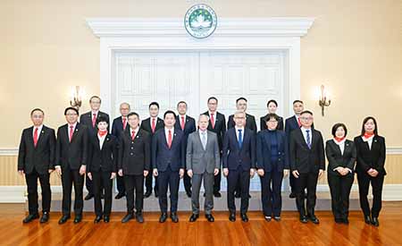 【特訊】行政長官岑浩輝昨(12)日在政府總部會見澳門工會聯合總會第三十七屆候任理監事領導架構成員,雙方就保障廣大職工的合法權益、維護社會穩定、推進特區邁向新階段發展等議題交流意見。
