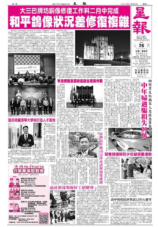 岑浩輝介紹特區最新發展時指出,澳門旅遊業2025年的成績靚麗,全年訪澳旅客達4,000萬人次。特區政府將不斷豐富世界旅遊休閒中心的內涵,加快文化、體育產業的發展步伐,用好中西文化薈萃的傳統優勢,以多元方式推動澳門文旅事業更上一層樓。