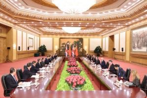 習近平指出,當前國際局勢變亂交織,中英作為聯合國安理會常任理事國和世界主要經濟體,無論是維護世界和平穩定,還是促進兩國經濟民生,都需要加強對話和合作。中方願同英方秉持大歷史觀,超越分歧、相互尊重,把中英合作“大有可為”的潛力轉化成“大有作為”的實績,為中英關係與合作開新局,既造福兩國人民,也惠及世界。