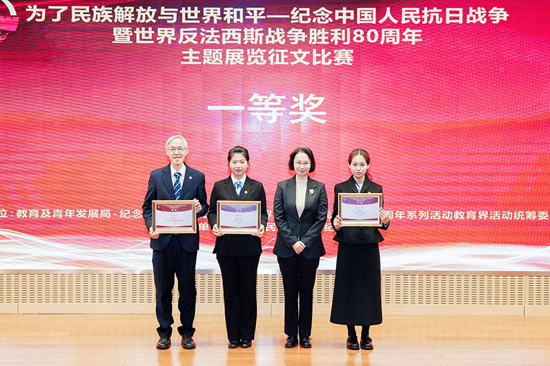 是次比賽由澳門特別行政區政府教育及青年發展局以及紀念中國人民抗日戰爭暨世界反法西斯戰爭勝利80周年系列活動教育界活動籌備委員會主辦。澳大共有18名學生獲得多項殊榮,包括兩項一等獎、一項二等獎、三項三等獎、五項優異獎及七項入圍獎;指導老師、澳大學生事務長彭執中亦榮獲指導老師一、二、三等獎。澳大師生赴北京參與比賽頒獎典禮,師生攜手登台,共獲殊榮,成果豐碩。