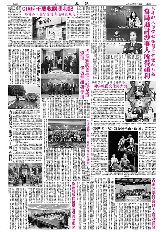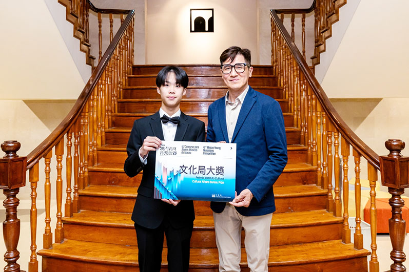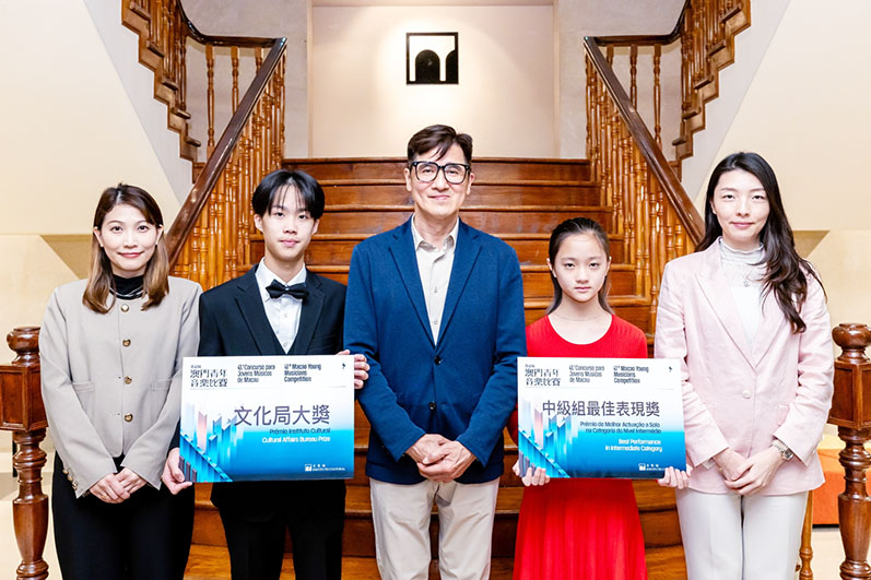 【特訊】文化局主辦的第四十三屆澳門青年音樂比賽特別大獎賽,2月26日在文化局大樓舉行頒獎儀式,楊宇帆獲“文化局大獎”,倪若涵獲“中級組最佳表現獎”,文化局副局長鄭繼明、演藝發展廳廳長郭妙瑜分別頒發獎項。