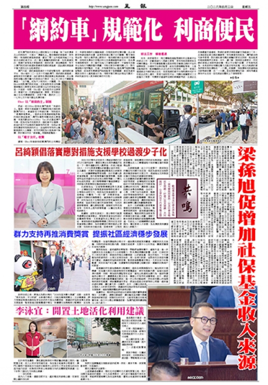 此外,呂綺穎關注教育專業畢業生的就業情況。她指出,畢業季即將到來,當局應適時釋出相關資訊,幫助即將投身教育界的畢業生做好個人規劃,清晰了解未來教育領域的發展趨勢與機遇,從而在人口結構轉變的過渡期內,穩定教育人才供應,為本澳教育持續發展注入新動力。