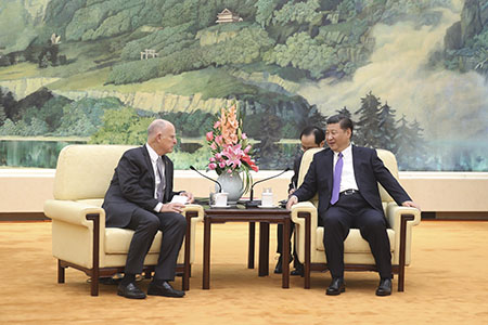 習近平指出,中美建交以來,兩國關係經歷風雨、砥礪前行,給兩國人民帶來了巨大利益,也有力促進了亞太地區和世界的和平、穩定、繁榮。中國將堅持和平發展、開放發展,堅持走綠色發展道路。新形勢下,中美兩國開展交流和合作的領域更加廣泛。雙方要加強溝通、拓展合作,推動中美關係健康穩定向前發展。