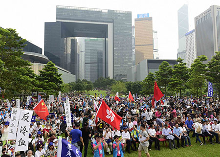 【香港中通社九月十七日電】香港特區立法會議員何君堯十七日在香港金鐘添馬公園發起“吶喊大會”,要求香港大學校務委員會辭退非法“佔中”發起人、港大法律系副教授戴耀廷。集會持續多個小時,大會稱有四000人參與這次集會。