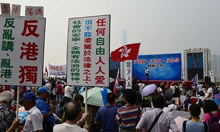 集會參與者鄧先生認為,香港的教育制度,從小學、中學到大學,都沒有一個良好系統去培養學生正確的國家觀念,導致現在各個大學都有部分學生被“洗腦”,他反對在大學校園宣傳“港獨”,因而站出來發聲。