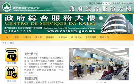 政府綜合服務大樓位於澳門黑沙環新街52號,辦公時間為星期一至五、上午九時至下午六時,中午照常辦公。如有查詢可致電2845 1515或瀏覽政府綜合服務大樓網頁www.csraem.gov.mo。