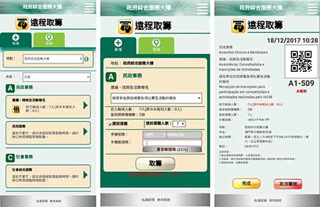 【特訊】政府綜合服務大樓為加強資訊發放及方便市民辦理服務,於十二月二十七日正式啟用大樓新版網頁,除提供大樓的最新消息、基本資訊及各項行政手續資料外,還增設查閱現場輪候資訊和遠程取籌服務功能,方便市民透過電腦或智能手機於辦公時間內之繁忙時段取籌,節省市民現場排隊輪候時間,輕鬆辦理各項政府服務。大樓新版網頁使用響應式網頁設計,適用於各類型電腦及智慧型手機之螢幕裝置,並將遠程取籌、預約和輪候情況等個性化服務匯聚同一平台上。遠程取籌功能會視乎服務區的輪候人次而對外開通,倘輪候人次較少或非為遠程取籌服務時間則須親臨現場取籌。市民進入主頁後點撃「遠程取籌」按鈕,選擇辦理服務的區域及項目,設定提前提醒人數,然後輸入本地手機號碼及驗證碼,再按「取籌」按鈕後便會收到成功取籌之手機短訊,市民只要手持短訊連結內之二維碼(QR Code)電子籌號到大樓的自助報到機或公關接待櫃檯報到,便可激活籌號,然後到相應之服務櫃檯待叫號辦理所需服務。