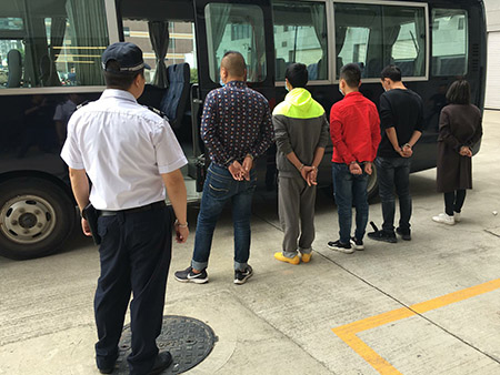 涉案的四男一女均來自內地,年齡介乎23至45歲,當中兩名男子疑為蛇頭,涉嫌觸犯第6/2004號法律第14條『協助』罪,其餘三人為非法入境人士,已全數移送司法機關處理。經審理後,次案中疑為蛇頭之男子被羈押候審,其餘人士則被移送治安警察局處理。海關呼籲市民,如發現有懷疑非法出入境活動,請即與澳門海關聯絡,24小時舉報熱線:2896 5001。