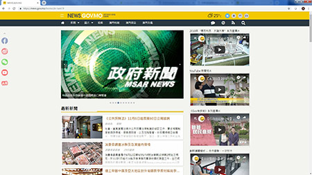【特訊】新聞局昨(6)日推出以政府新聞信息為定位的全新公眾網站,透過全新的多媒體平台,即時發放特區政府施政、重大、突發、最新的新聞及民防等信息,以及各公共部門日常新聞消息。