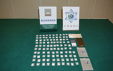 在前(二十六)日下午,司警獲悉少女將來澳,於是通知海關協助,同日晚上目標少女從港澳碼頭入境,司警進行跟蹤監視,少女抵澳後隨即在港澳碼頭外接觸了一名男子,並把一袋物品交予對方,相信是毒品交收,司警及海關人員隨即採取行動把兩人截下,並當場搜出一個透明膠袋,經點算袋內共有一百小包毒品「可卡因」,共重三十六克,價值約澳門幣十二萬。兩名被捕男女分別是姓李男子,二十三歲,香港居民,無業;姓鄭女子,十五歲,香港居民,學生。