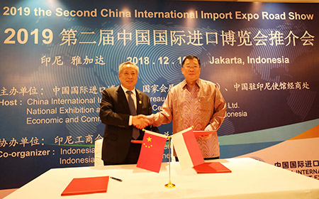 中國國際進口博覽局和印尼有關商協會在推介會上籤訂了相關合作協議。