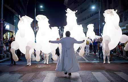本周大巡遊社區演出精彩紛呈:三位來自不同國家的得奬活雕塑藝術家,一連四日(12月12日至15日)中午12時30分在社區各角落驚喜出現;來自韓國的Getdol劇團為大家介紹由韓國純樸小鎮木浦來的Okdan姐,分別在12月13日下午5時30分在三盞燈圓形地、12月14日中午12時30分在大三巴出發至區華利前地,及12月15日下午3時30分至4時30分在白鴿巢公園與大家見面,載歌載舞。