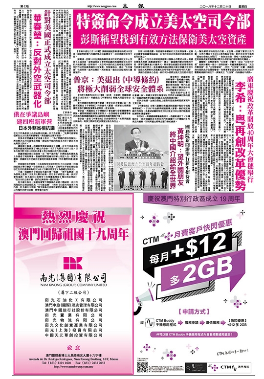 當前報章2018年12月20日