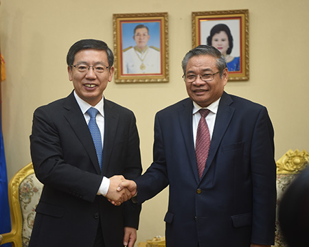 同日,王文天大使還拜會了柬埔寨副首相尹財力,並舉行會談。